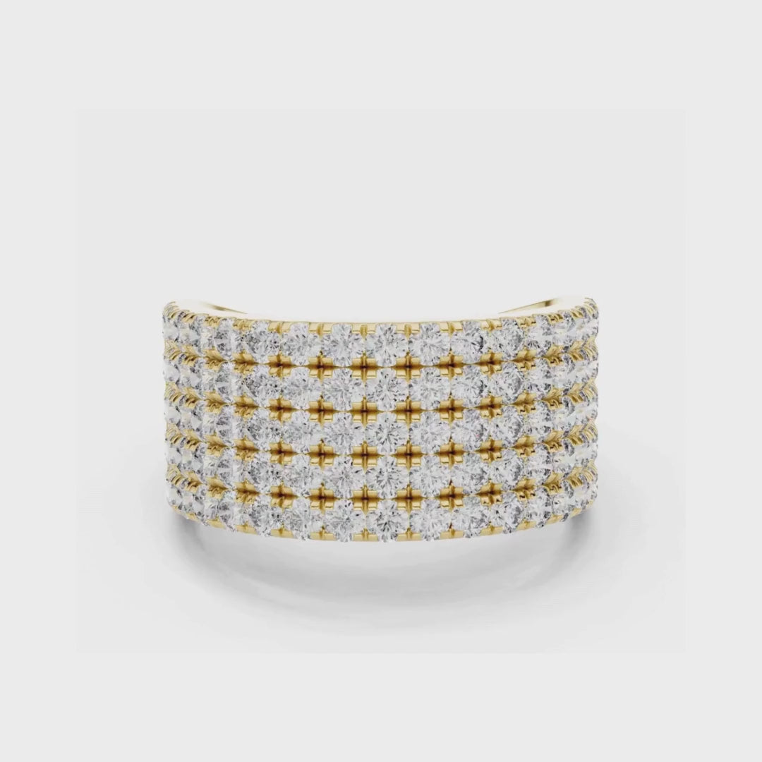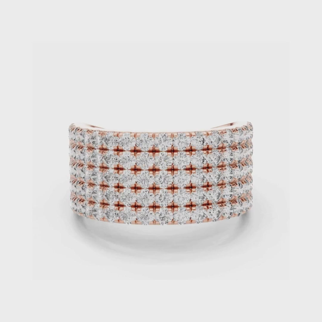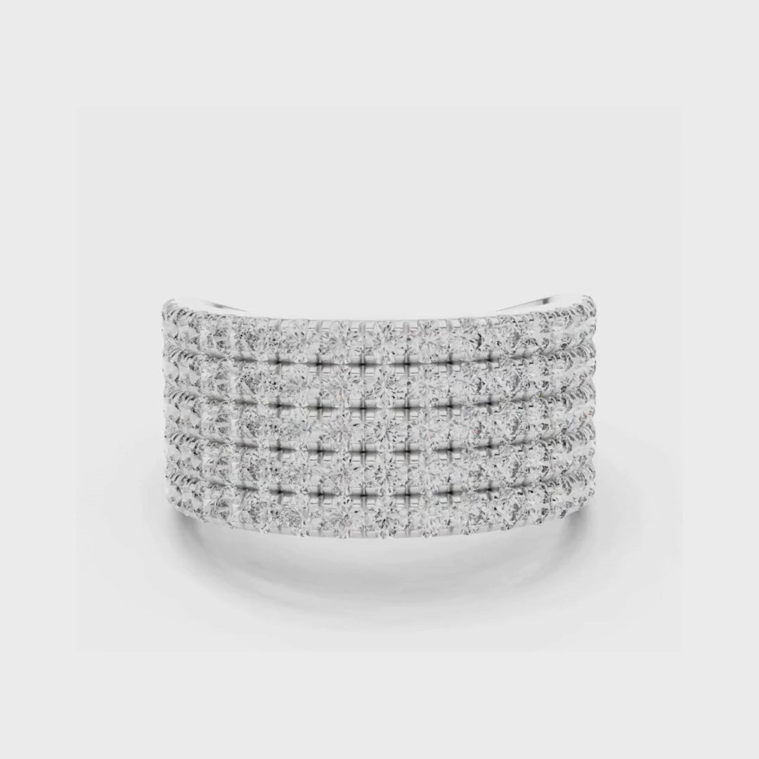 The Illumara Luxe Band is a masterpiece of brilliance, crafted for those who admire refined elegance with a modern touch. Featuring multiple rows of intricately set round-cut diamonds, this band radiates a continuous wave of shimmer from every angle. The wide silhouette enhances its luxurious presence, while the smooth, high-polish metal band ensures lasting comfort.